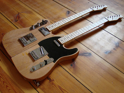 On Friday my carpenter friend came to check the Doppelcaster, she looked pitifully at my chisel, my rasp and the mutilated tele bodies, and decided to take them to her workshop, rectify them with her machines, and glue them since she was at it... Lucky me!